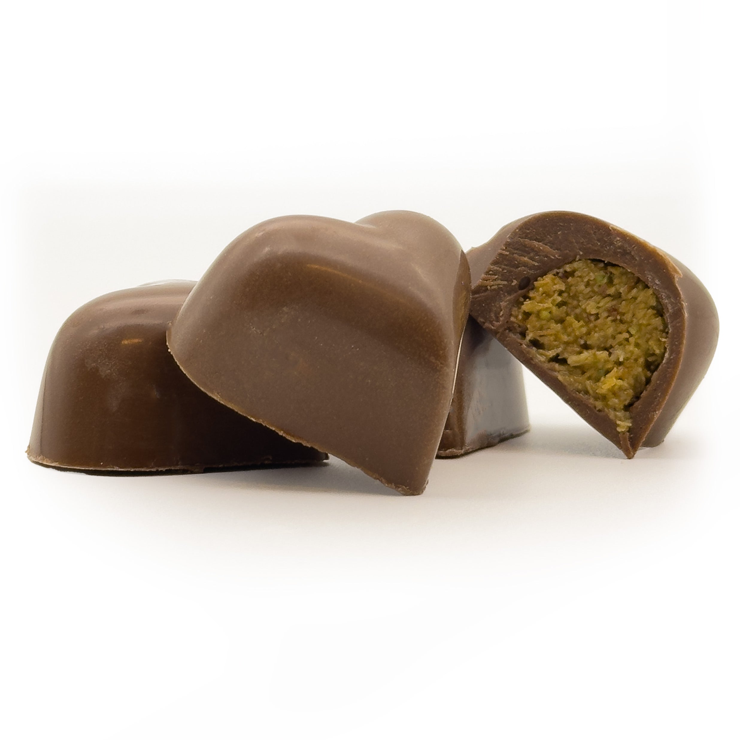 Dubai Pralines with Pistachio Filling are a modern and exclusive version of the classic Dubai chocolate that has taken the world by storm. Each box contains 8 carefully crafted pralines with only the finest ingredients for an unforgettable taste experience. The rich pistachio filling is enveloped in a layer of milk chocolate and combined with the crispy kunafa dough. This creates a sophisticated taste that is never overwhelming.